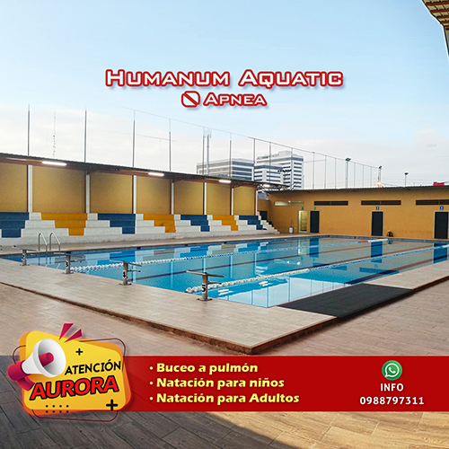 Club Humanum Aquatic se muda a La Aurora; piscina de 25 mts con 5 carriles!!! Vamos a tener clases de apnea, natación para niños y adultos, natación con aletas y hockey subacuático en esta nueva sede La Aurora. Estamos en la Av. León Febres-Cordero, cerca del C.C. El Dorado, en el polideportivo de La Aurora a una cuadra del Mall Municipal, pide cita y conoce nuestras instalaciones. Todos nuestros programas están diseñados para ayudarte a alcanzar tus objetivos; llama o escríbe a nuestro whatsapp para más información 0988797311 o al correo info@humanumaquatic.com